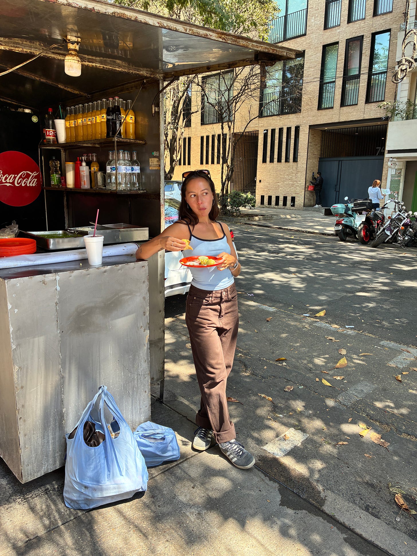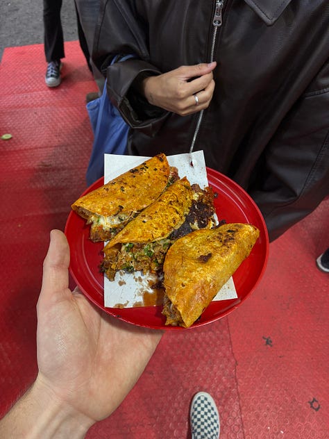 Hola El Guero Un taco stand dans Condesa très convoité à toute heure de la journée. Leurs tacos étaient un peu différents de ceux que nous avions goûtés ailleurs : plus savoureux, moins salés, et leur viande hachée était parfaitement assaisonnée. Mention spéciale aussi à leur bœuf braisé dans une sauce au chili, délicieux choix. On peut ajouter du riz, des fèves ou du fromage, et si vous êtes chanceux, il y aura aussi du guacamole tout doux. Parfait pour un lunch rapide et économique. Leur jus à la fleur d’hibiscus vaut aussi la peine : pas trop sucré et très parfaitement désaltérant pendant les journées chaudes.