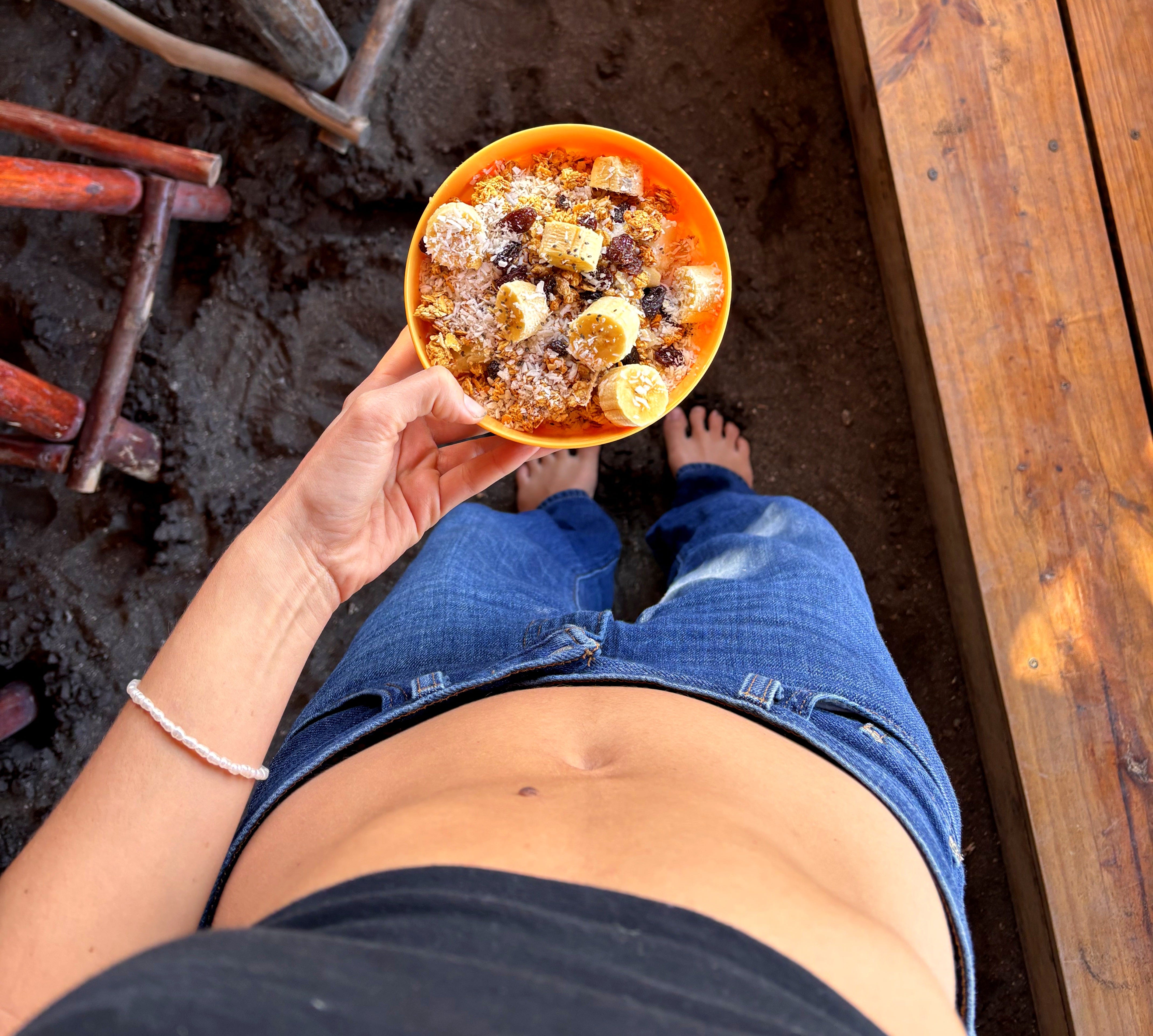 En vivant au rythme du soleil, mes journées commencent à 6 h 15. Je prends le temps soit de faire du yoga et des étirements au réveil, soit d’aller prendre une longue marche sur la plage, suivie d’une baignade dans l’océan.