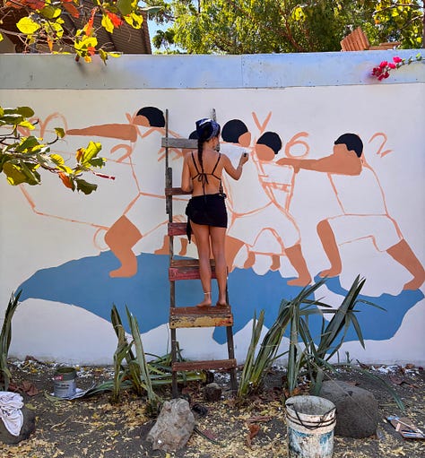 J’ai partagé des fous rires avec de nouvelles amies, écouté des récits de vie, tissé des liens avec les locaux. Je suis devenue bonne aux échecs. J’ai appris sur moi-même. J’ai aidé Oliver à peindre une murale pour un café du village, aux côtés de propriétaires d’une grande gentillesse. J’ai nourri ma pratique du yoga chaque jour, seule ou entourée de nouveaux visages. J’ai eu un pincement au coeur en partant, sachant que j’allais surement remettre les pieds la-bas mais sans savoir si je reverrais mes nouveaux ami.es venus d’un peu partout dans le monde.